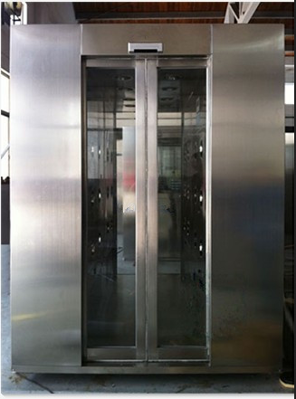 風淋室是一種通用性較強的局部凈化設備,安裝于潔凈室與非潔凈室之間。當人與貨物要進入潔凈區時需經風淋室吹淋,其吹出的潔凈空氣可去除人與貨物所攜帶的塵埃,能有效的阻斷或減少塵源進入潔凈區。風淋室/貨淋室的前后兩道門為電子互鎖,又可起到氣閘的作用,阻止未凈化的空氣進入潔凈區域。